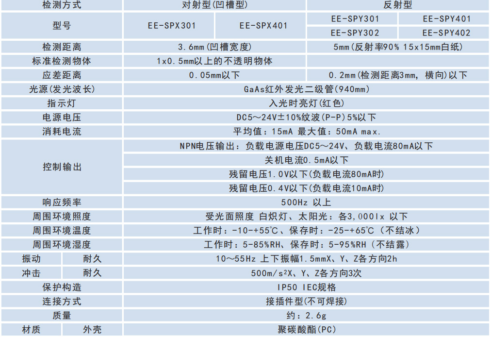 EE-SPX301/401系列凹槽型光電開關(guān)