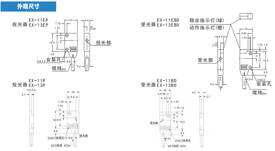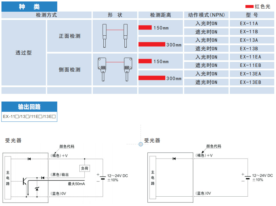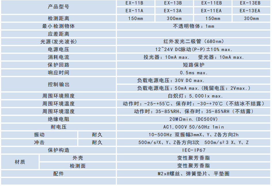 EX11-EX13系列超薄型放大器內(nèi)置光電傳感器