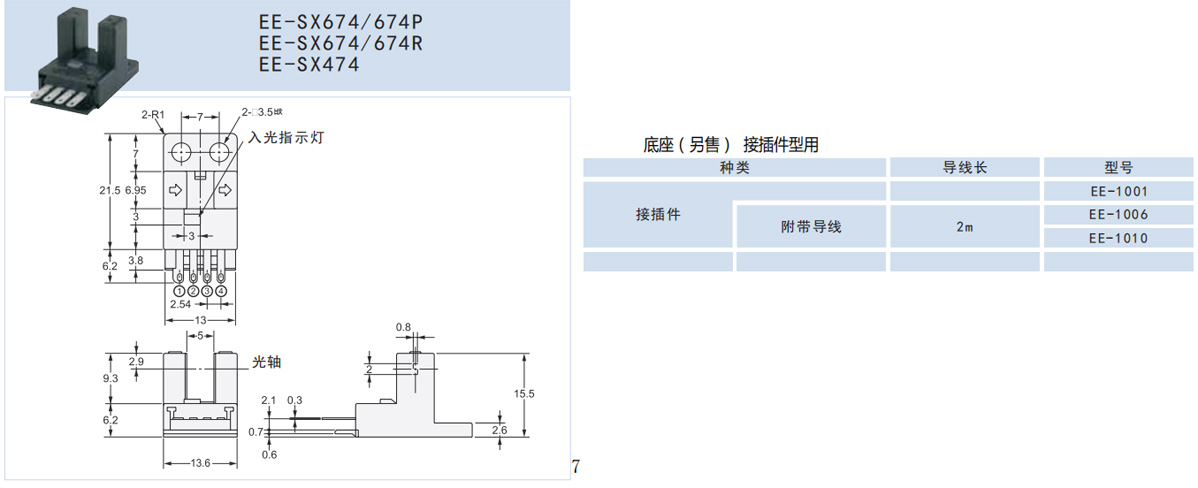 EE-SX67系列凹槽型反射型接插件型