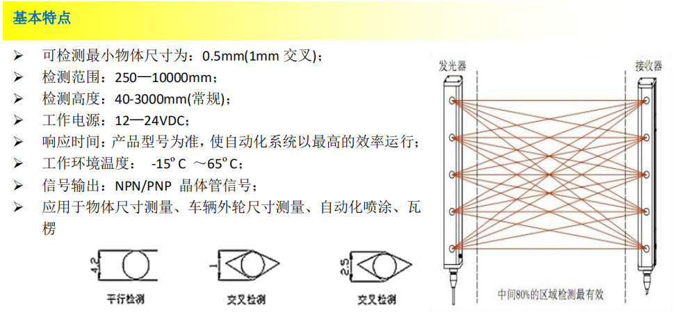 1、開關(guān)量輸出:NPN/PNP 通過程序設(shè)定遮擋不同數(shù)目的光束時(shí),光幕才有信號(hào)輸出;