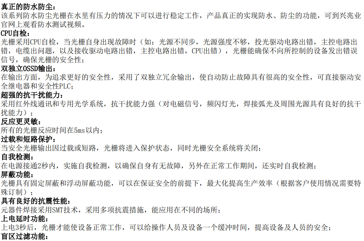 XZYC系列防水防塵型安全光柵/光幕
