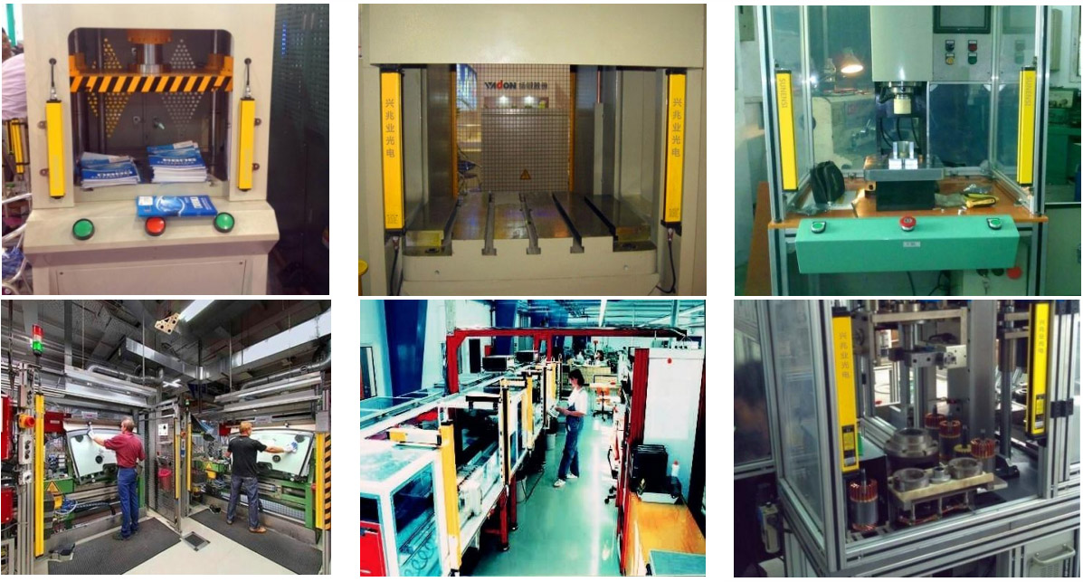 各自自動(dòng)化設(shè)備、鍛壓機(jī)床、剪切機(jī)器、液壓機(jī)械、機(jī)器人、工業(yè)機(jī)械手、包裝設(shè)備、生產(chǎn)流水線、立體車庫及其它自動(dòng)化設(shè)備,也可用于多面區(qū)域保護(hù)或防盜等。