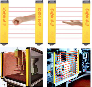 人體物體安全光幕工作原理;光幕的一邊等距離裝置有多個紅外發(fā)射管,另一邊相應(yīng)的有一樣數(shù)量相同擺放的紅外接納管,每一個紅外發(fā)射管都對應(yīng)有一個相應(yīng)的紅外接納管,且裝置在同一條直線上。當(dāng)同一條直線上的紅外發(fā)射管、紅外接納管之間沒有障礙物時,紅外發(fā)射管宣布的調(diào)制信號能順暢抵達紅外接納管。紅外接納管接納到調(diào)制信號后,相應(yīng)的內(nèi)部電路輸出低電平,而在有障礙物的情況下,紅外發(fā)射管宣布的調(diào)制信號不能順暢抵達紅外接納管,這時該紅外接納管接納不到調(diào)制信號,相應(yīng)的內(nèi)部電路輸出為高電平.